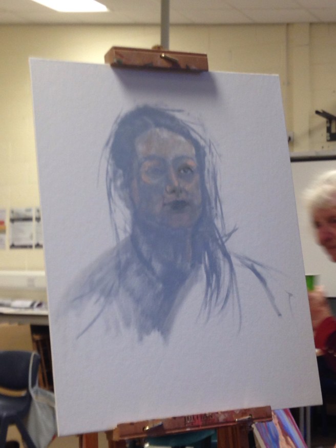 A pastel sketch, about half-way finished, at Hull Art Circle.