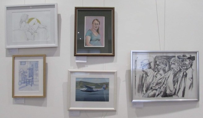 A clothed portrait, top centre, at Hull Art Circle’s Winter 2018 exhibition.