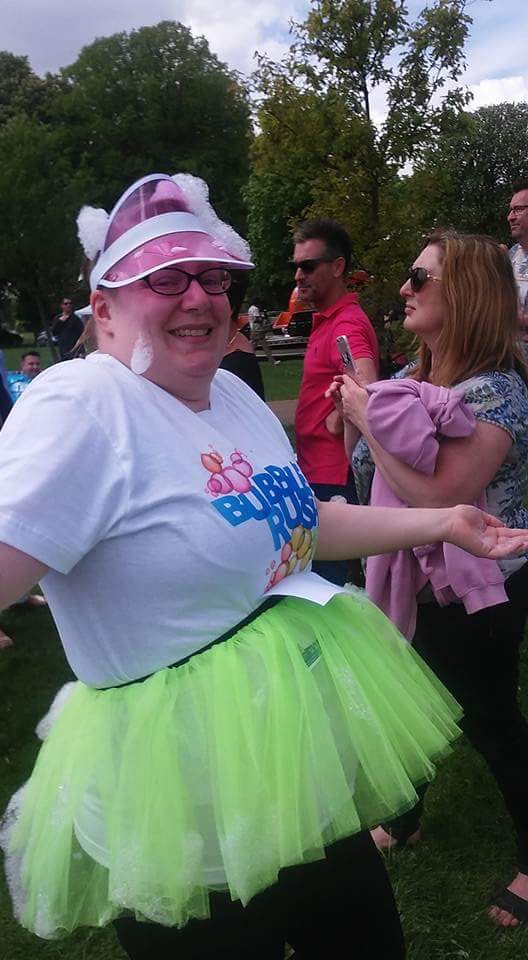 Here’s me running a charity 5k ‘bubble run’ for a local charity. I was super slow and super non-binary. I also quite liked the tutu this time.