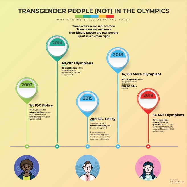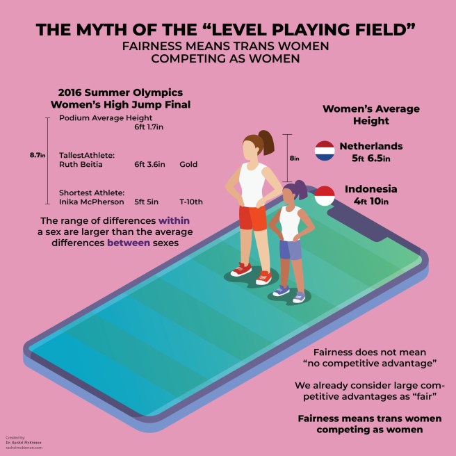 Transgender people don’t deserve to feel bad for wanting to take part in sports. Nobody deserves to feel that way – sport should be for everyone, perhaps especially for oppressed people, and everyone who wants to compete should be able to at the highest level they can.