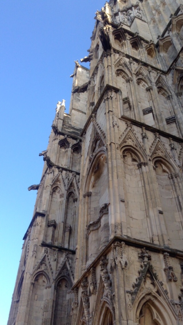 Picture description: A view of York Minster and a blue Spring sky from an adventure with a friend.